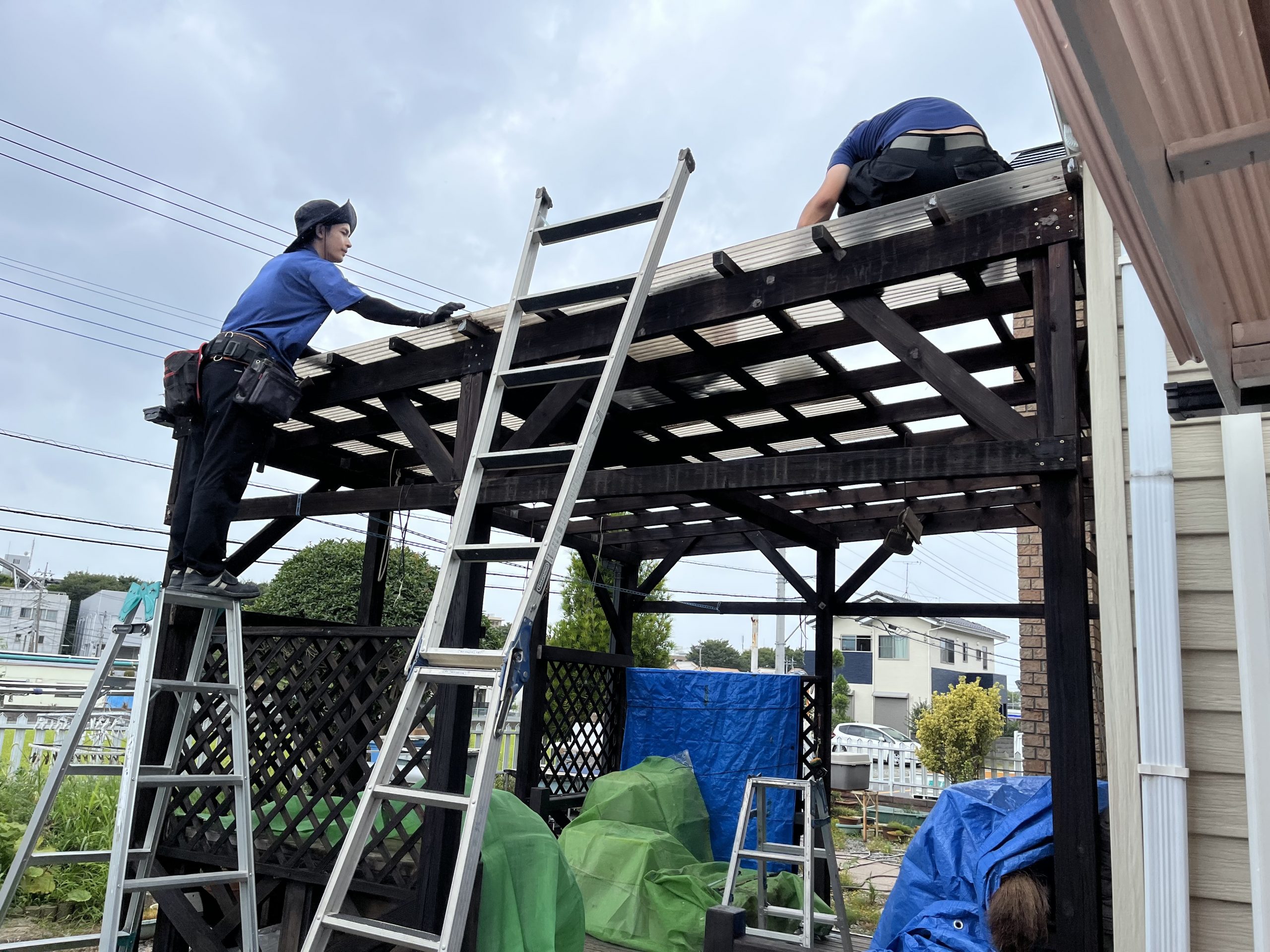 新しい波板を張り替えたことで、テラス全体が明るく、開放感のある空間になりました。