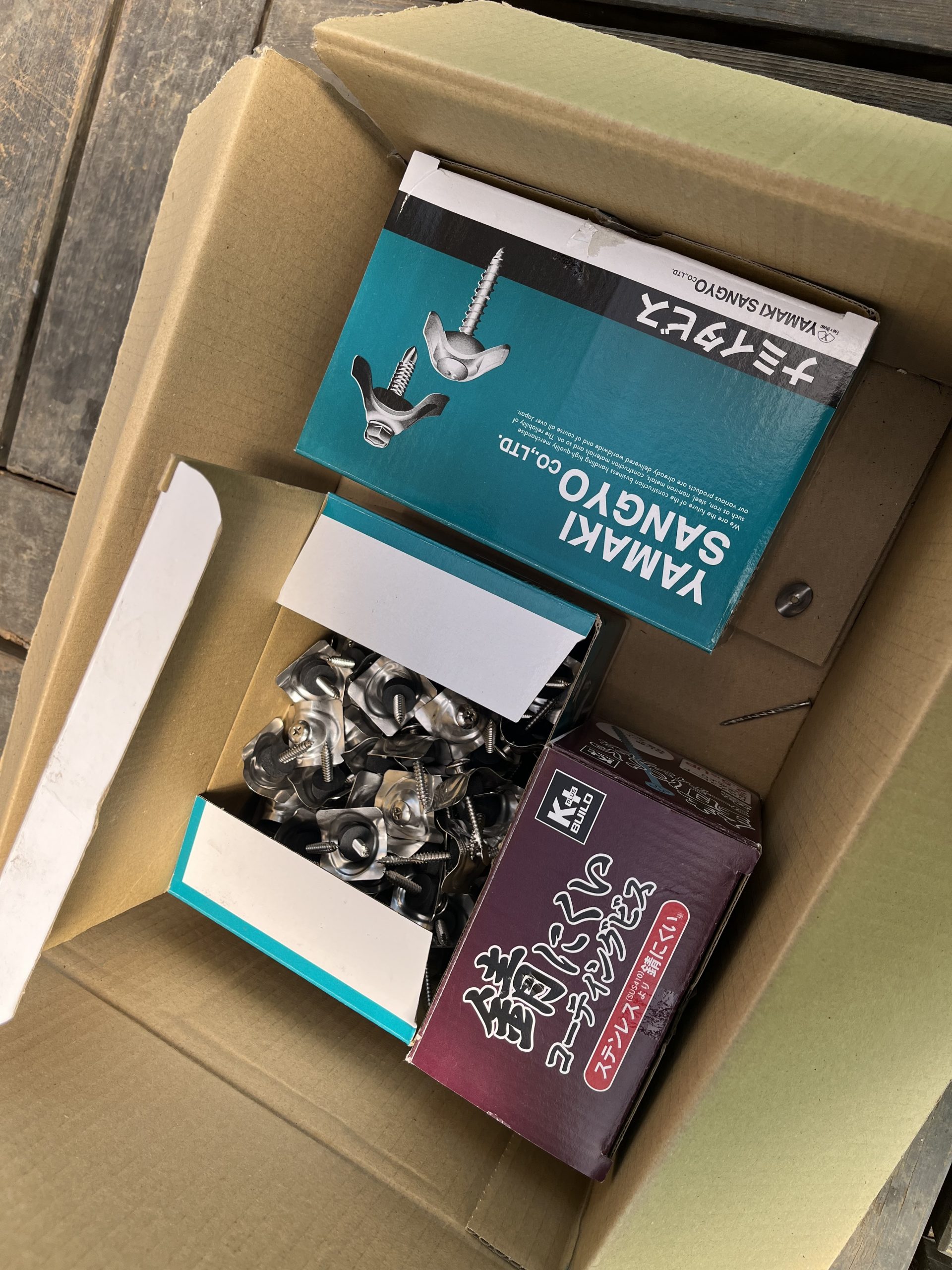 波板の 山部分にビスを打ち込むことで、水が溜まらない構造にする