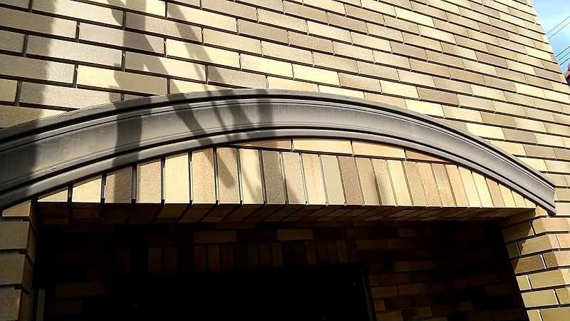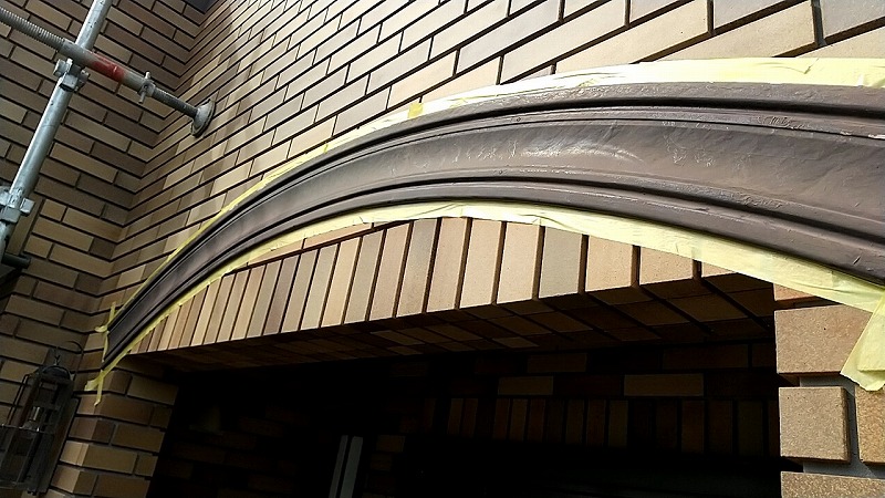 玄関ホールの上部にある窯業(セメント系)のモール(化粧板)塗装の様子をご紹介いたします。