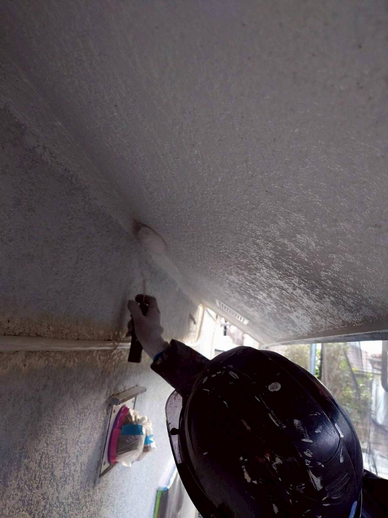 既存は、外壁と同じ色でしたが、「軒天の色を変えませんか?」というご提案に、「え?外壁と違う色に変えられるの?前回の塗装の時は、そんなこと聞かれなかった…」と、仰っていました。