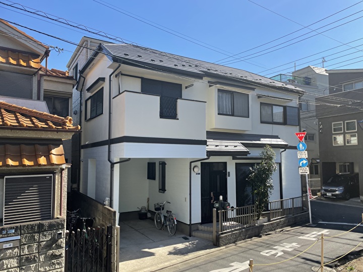 外壁塗装には日本ペイント株式会社のパーフェクトトップを採用し、ツートンカラーでの仕上げをご希望いただきました。