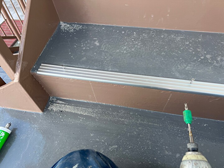 塗装が完了した後、ノンスリップの設置作業を行いました。