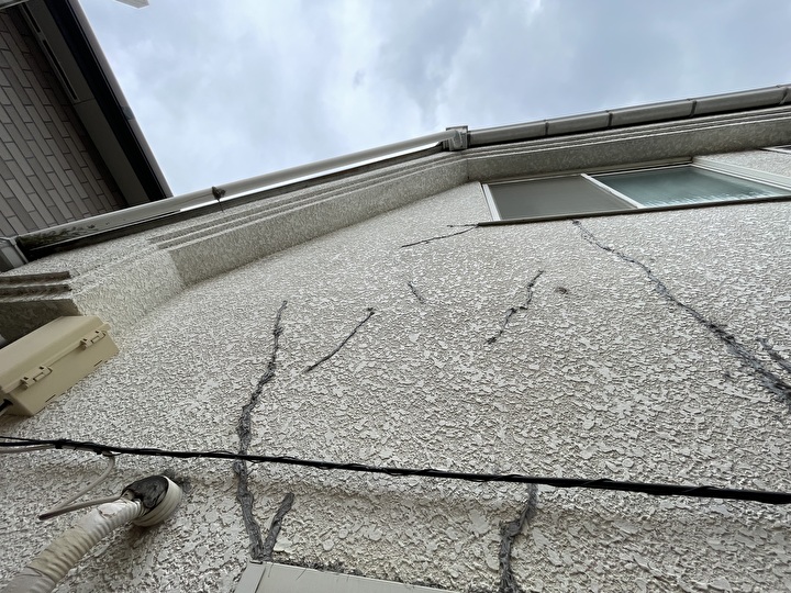 一部の外壁に複数のクラックが確認され、雨漏りのリスクが高まっている状況でした。