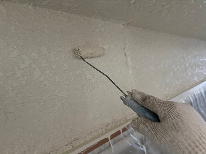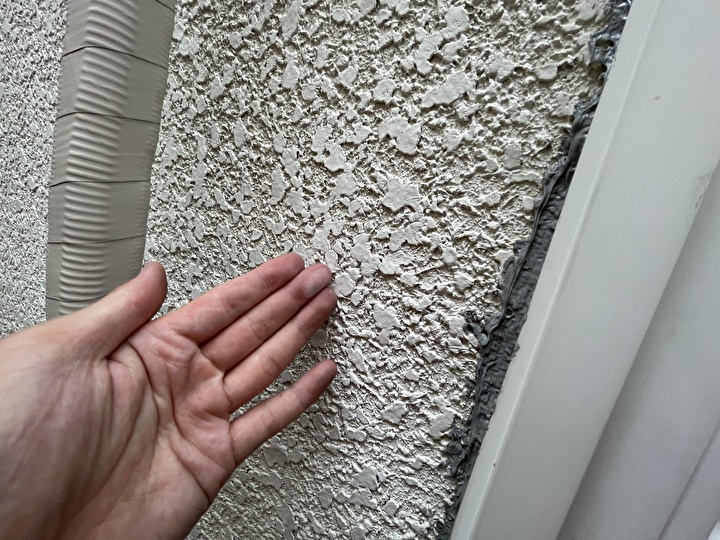 外壁や付帯部分の塗装にはチョーキングが見られ、塗膜の劣化が進んでいるサインが確認されました。チョーキング現象とは、塗料の顔料が分離して粉状になることで起こる現象で、塗膜の寿命を示すサインの一つです。太陽光や雨水に長期間さらされることで発生し、顔料が表面に出てくることで色あせが起こり、塗膜の性能が低下します。