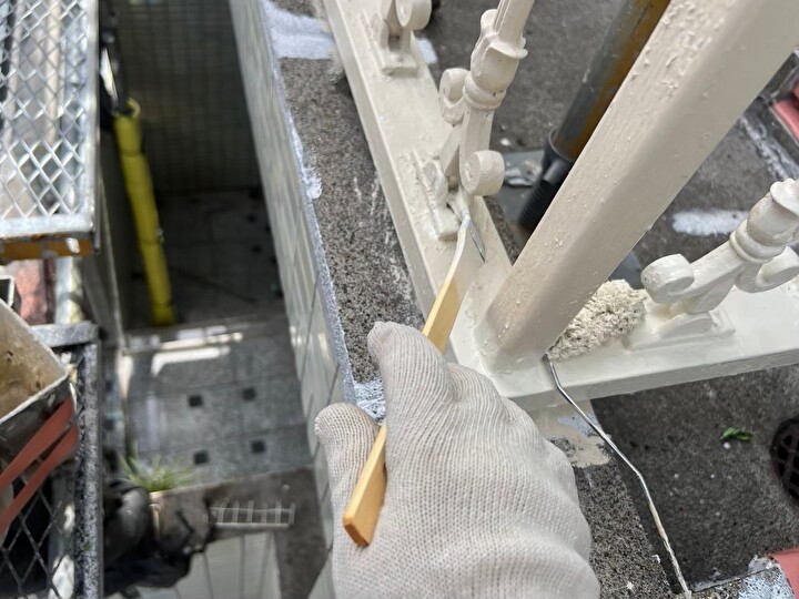 鉄部の下塗りには、サビの発生を防ぐ錆止め塗料を使用します。塗り残しがないよう全体に丁寧に塗布することが重要です。