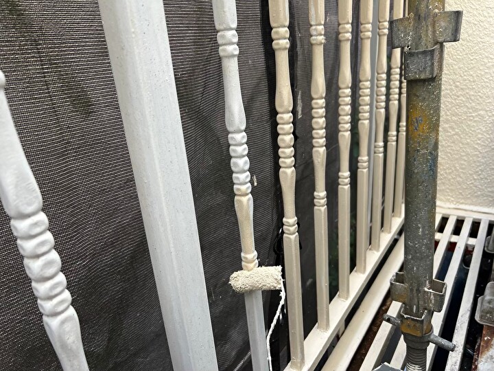 付帯部には金属製の手すりやシャッターがあったため、金属用の下塗り材を採用しています。