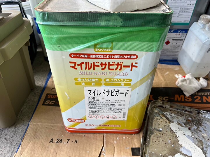 付帯部の塗装では、下塗りにマイルドサビガード、仕上げ塗料にクリーンマイルドウレタンを使用しました。