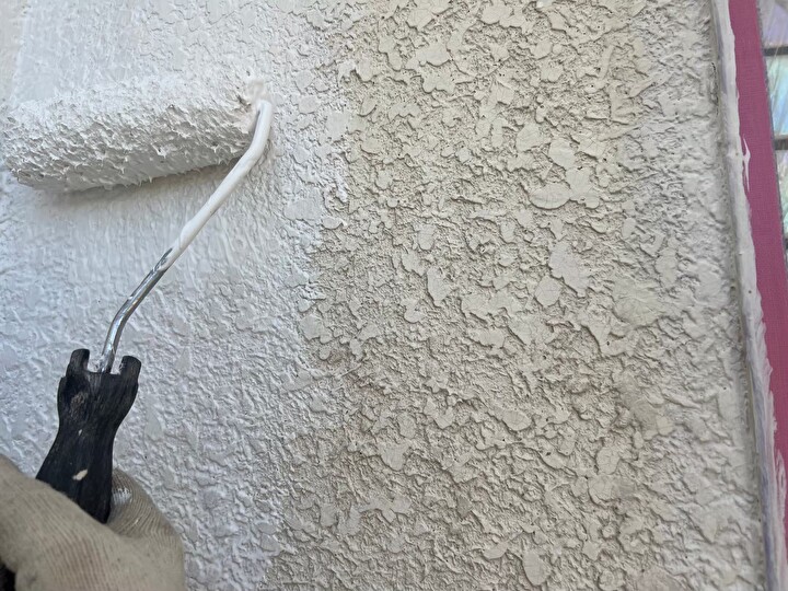 【上塗り】上塗りは、中塗りの後に行われる工程で、塗膜に厚みを持たせ耐久性を高める役割があります。