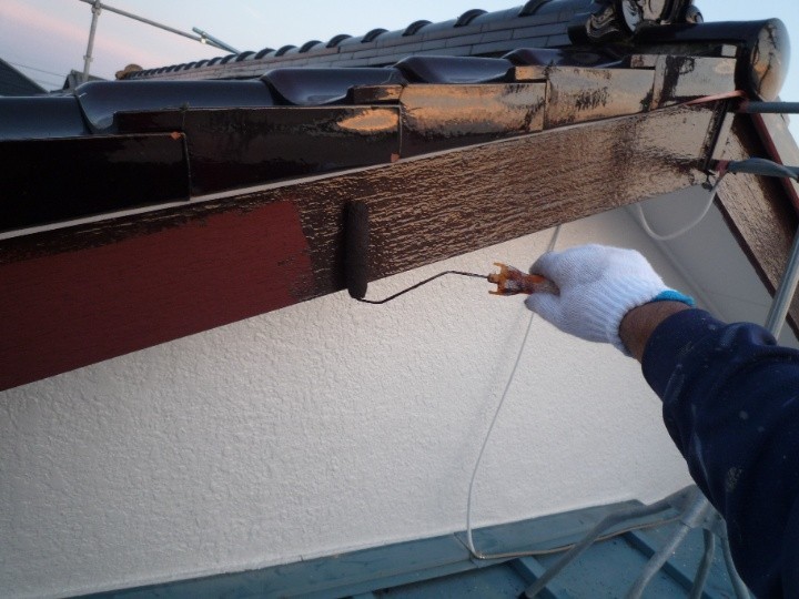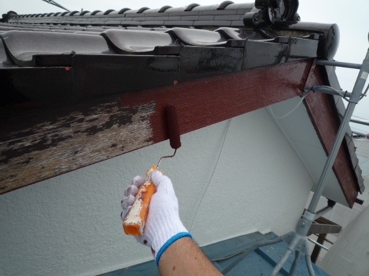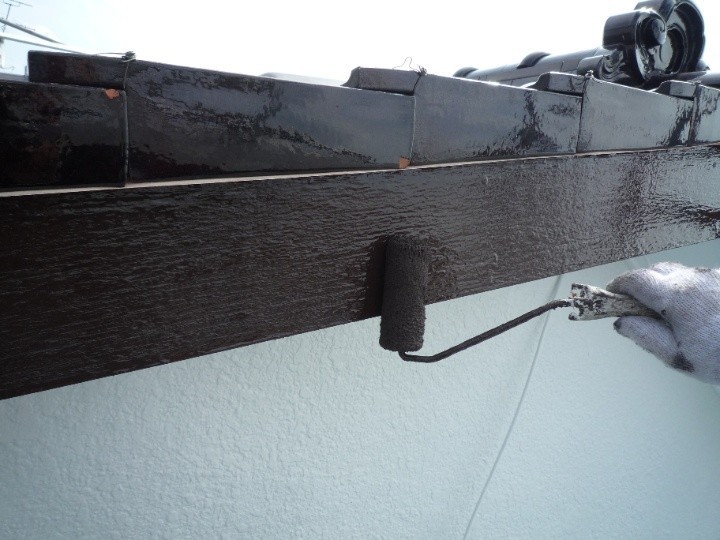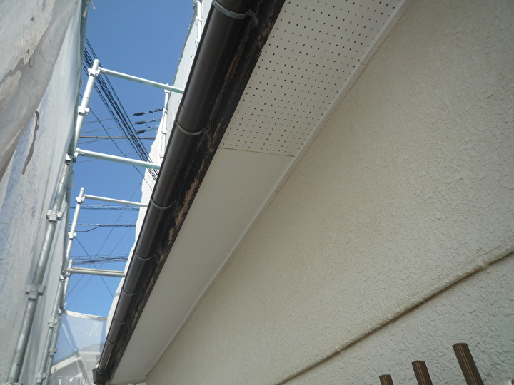 軒天の塗装においては、軒天専用塗料ともいえる『ビルディック』を使用し、二回以上の塗装工程を経て丁寧に仕上げてまいります。