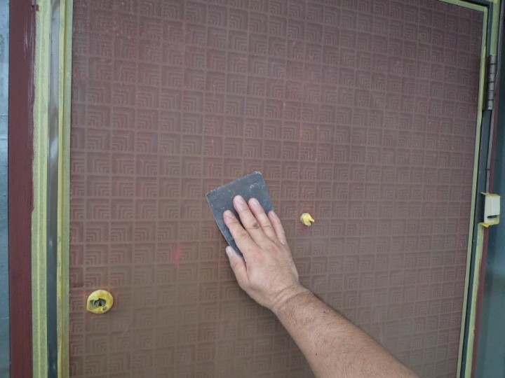 今回のお客様宅の雨戸には若干の錆が見られましたので、下塗りとして錆止めを施しております。