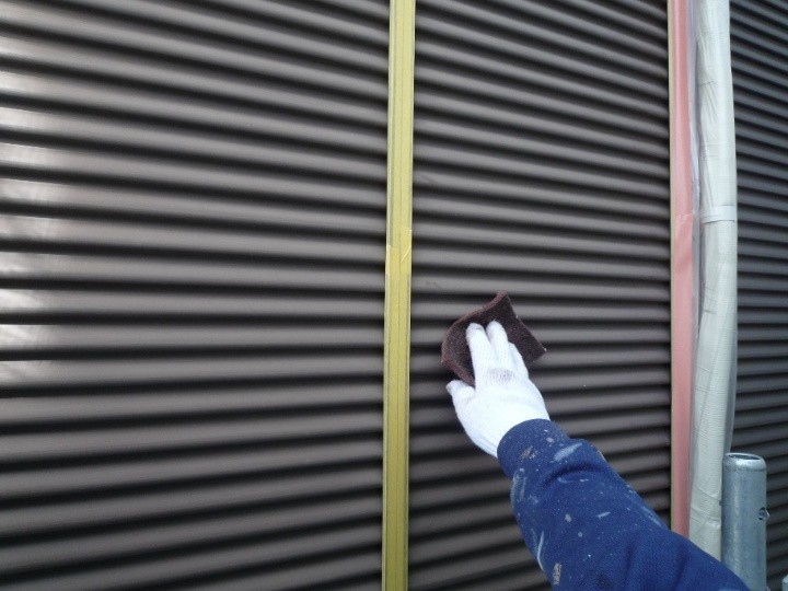雨戸や戸袋についても、表面の汚れや錆をケレン作業で丁寧に除去した後、必要に応じて錆止めを下塗りとして塗布いたします。