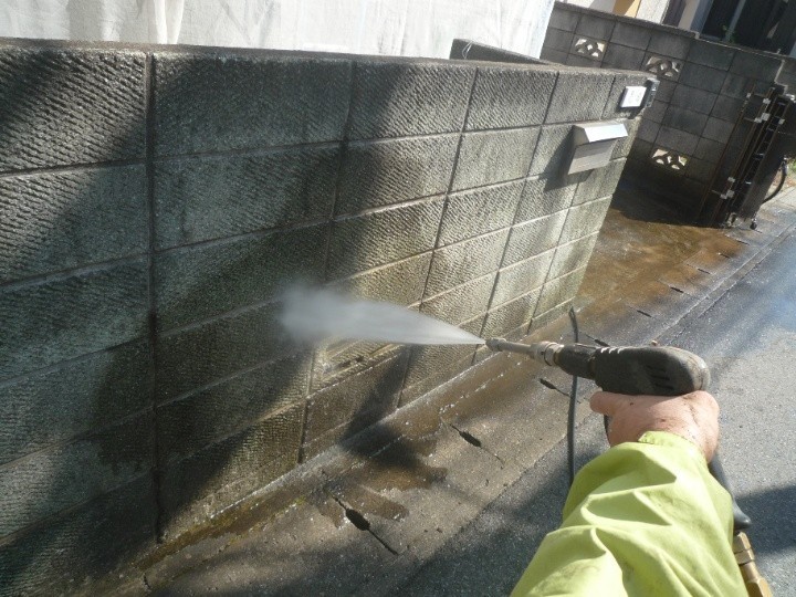 家屋だけでなく、周囲の塀についても洗浄を行います。