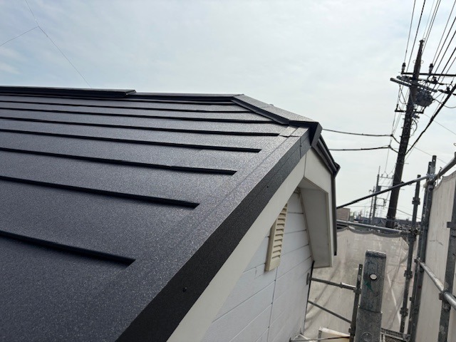 既存棟板金の撤去・下地洗浄・防水シート施工など、見えない部分も丁寧に施工。軽量で高耐久な金属屋根に刷新し、耐久性と断熱性も向上。長期的に安心して暮らせるお住まいになりました。