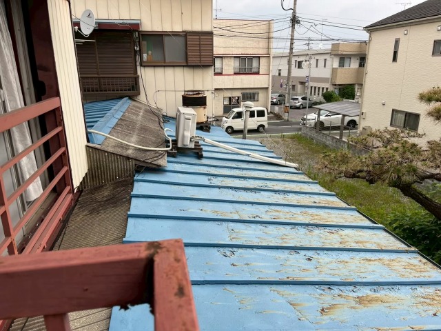 築50年のお客様から、「だいぶ前に塗装した屋根が、色が落ちてサビが出てきた。古いけど雨漏りはしていないから、葺き替えや大規模な工事は考えていない。塗装をしてきれいにして欲しい」