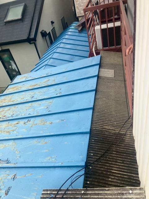 トタン屋根の塗装は剥離ていて、所々にサビが出ています。