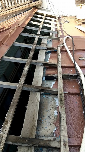 既存波板を撤去すると…横桟下地が腐って折れている箇所がありました。
