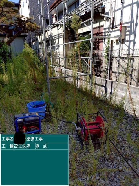 お隣様の敷地をお借りして、部分的に足場を立てました。
