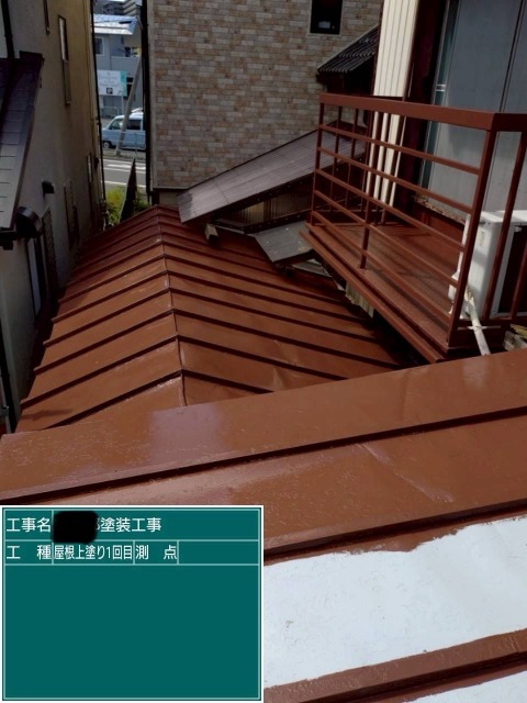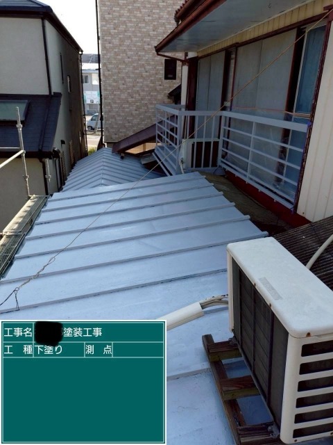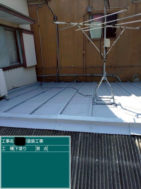 トタン屋根、鉄骨ベランダ、手摺りにプライマーを塗布します。